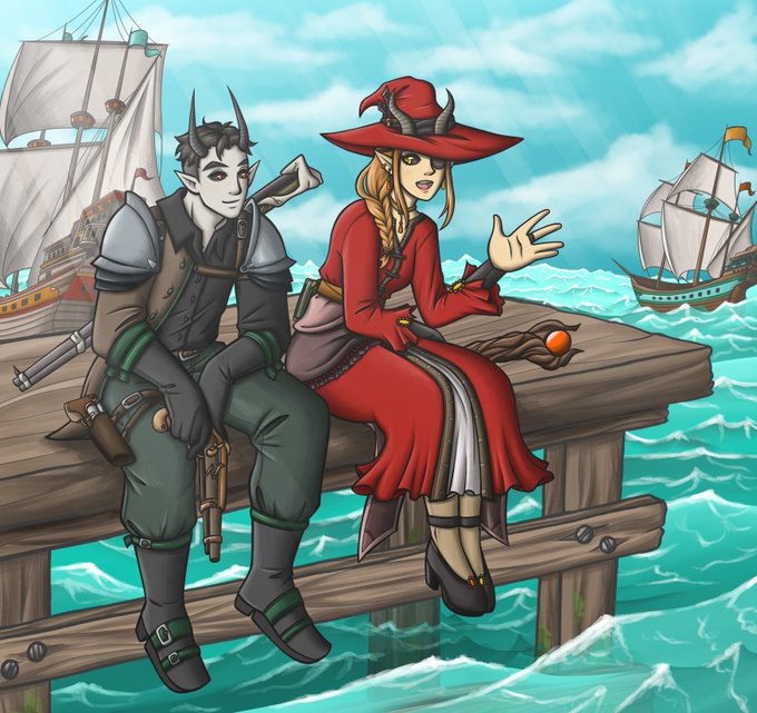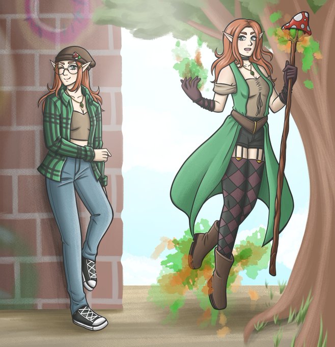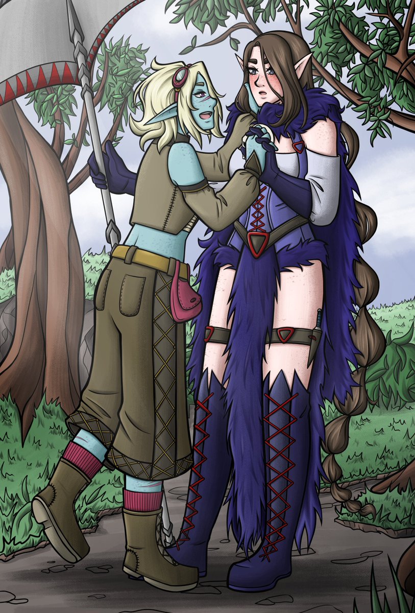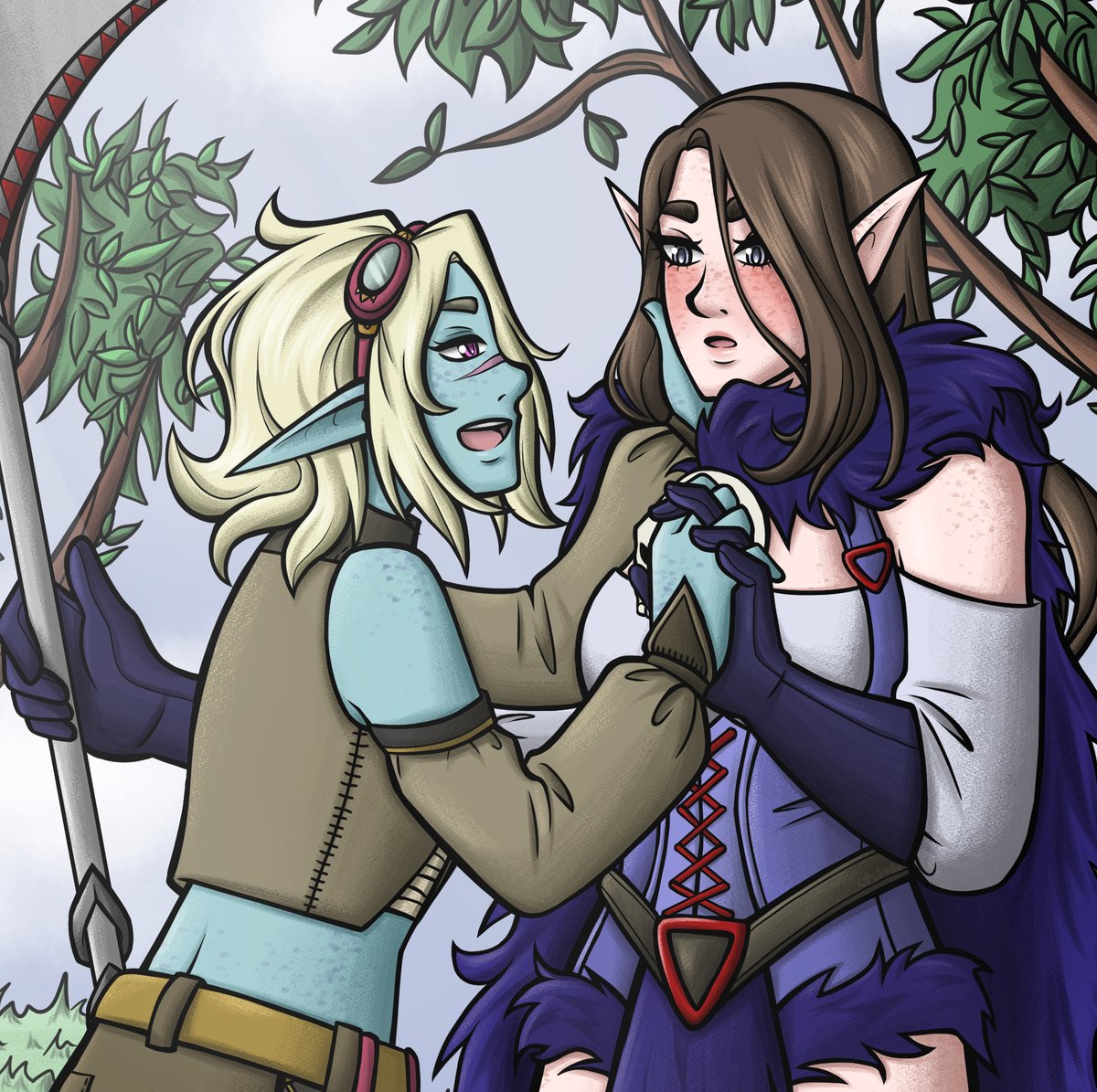 A drawing made for a fellow artist! This is their DnD character Bluebelle (right) and their friend's character Hazel (left). Enjoy :) #dnd5e #DnD #DnDcharacter #dndart #dungeonsanddragons #digitalart #characterdesign