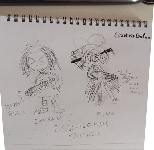 #ゾンB子見つけたよ #graveyART My gift for the 2nd anniversary ofZonBko!! Along with friend Ollie, shooting and being cute together Since I don't play Apex, I used weapons from Quake 1. Zonbko has the Double Barrel Shogun, Ollie has the Nailgun. I did my best. Hope both like it.