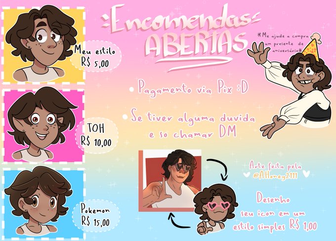 ✨ COMMISSIONS ICON ✨ 🦕Icons em diferentes estilos, isso é um teste para futuros trabalhos mais complexos 🦕 As vagas estarão abertas até 04/02 (aproveita que os preços vão mudar quando reabrir) 🦕 Qualquer dúvida ou interesse é só chamar na DM #commission #encomendas