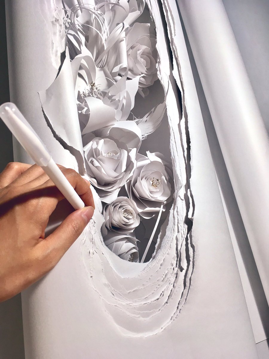 水と氷の切り絵作品。 自然の中に角ってほとんどないですよね。 どんなに尖って見える部分でも丸みや 揺らぎをもたせて丁寧に切っていくと、 遠くから全体を見た時にスッと心へ馴染む 気がします。 souma-wkh.com