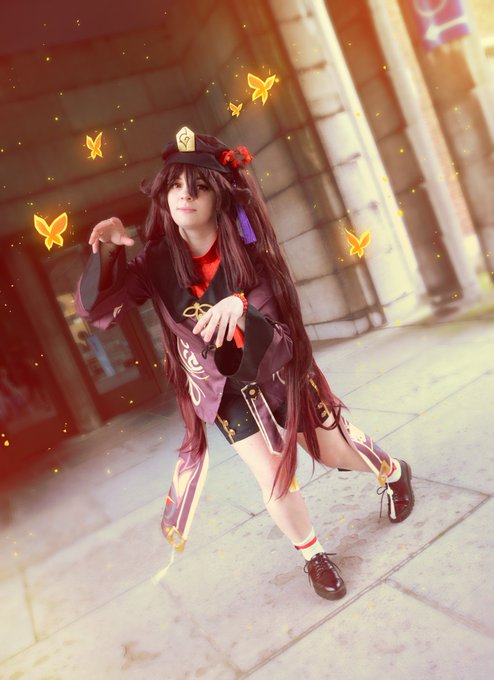 Lemme show you some fire tricks. First... Fire! And then... Whoosh! Fire butterfly! Be free! #GenshinImpact #GenshinImpactCosplay #HuTao #HuTaoCosplay #Cosplay