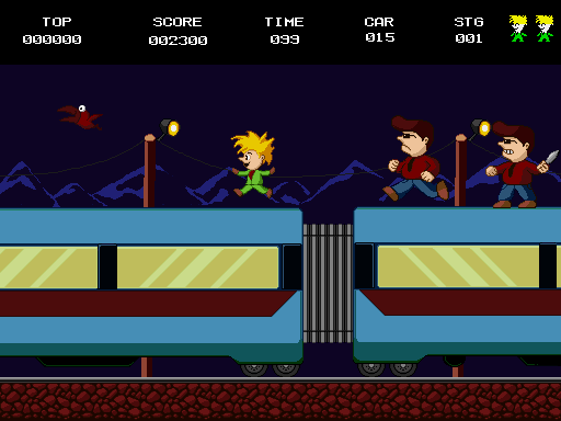 Been collaborating on a Spectrum remake for a month now. It's the Taito 1983 game "Stop the Express". Here's a mockup I've made with most of the assets I have so far! Everything is and will be very subject to change but I'd welcome any feedback. #pixelart #ZXSpectrum