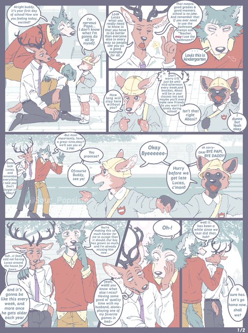 Lucas' first day going to class🏫!!! He has grown so much! Louis and Legosi wanna make sure he'll do well and have fun! Louis seems to be more demanding tho 😅 but atleast the Dads finally have some alone time for a bit 👀💦...(1/2)
