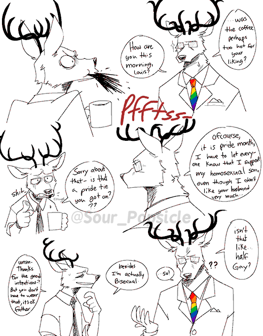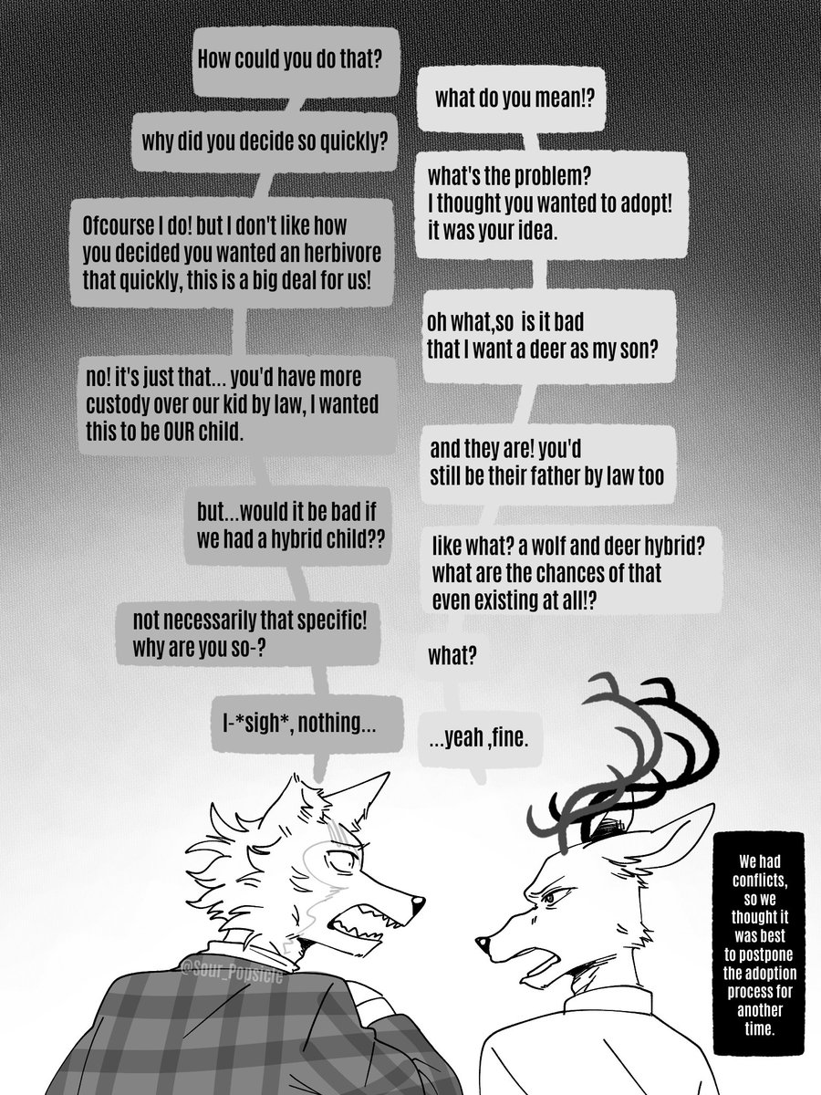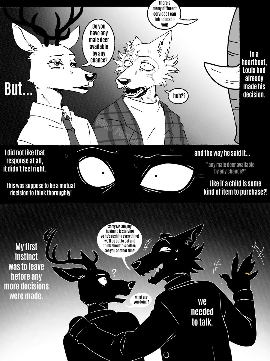 My portrayal of Louis and Oguma's relationship has been very cryptic/dubious since I don't draw them together very much. So I drew something real quick to get a bit of closure for anyone wondering how's their relationship after Louis got married to Legosi.