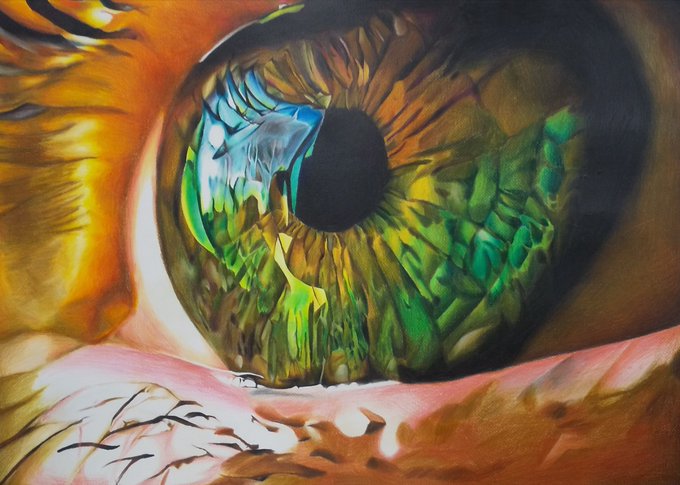 色鉛筆で人間の目を描きました 初のA1サイズ色鉛筆画は疲れた!!!!!!💧 色鮮やかなグラデーションに注目してご覧ください(◍︎´꒳`◍︎) #絵描きさんとつながりたい #色鉛筆 #模写