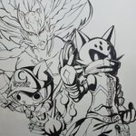 いとこの誕生日プレゼントに妖怪ウォッチのアースウォーカー、ブシニャンフューチャー、不動明王を描きました! コピック定期的に触らないとダメ(腕が鈍る) なんなら線画の方がカッコイイもんな #絵描きさんと繋がりたい #コピック