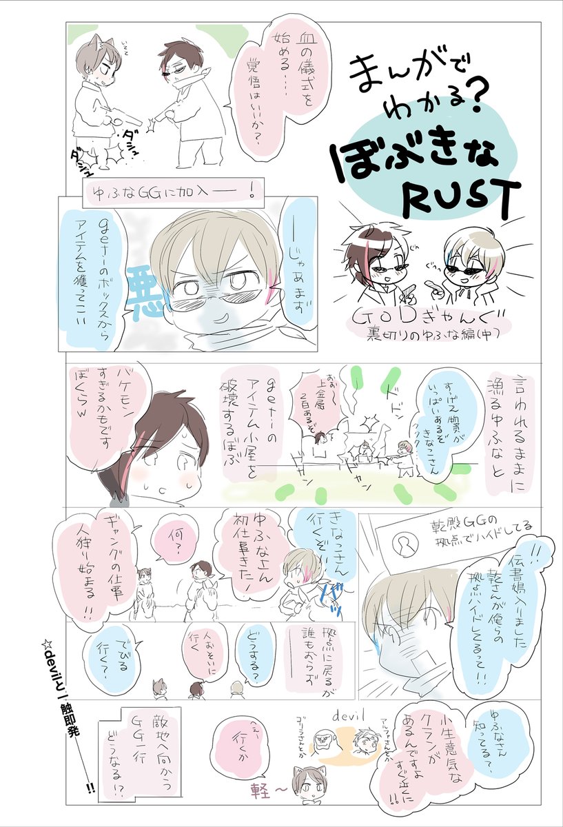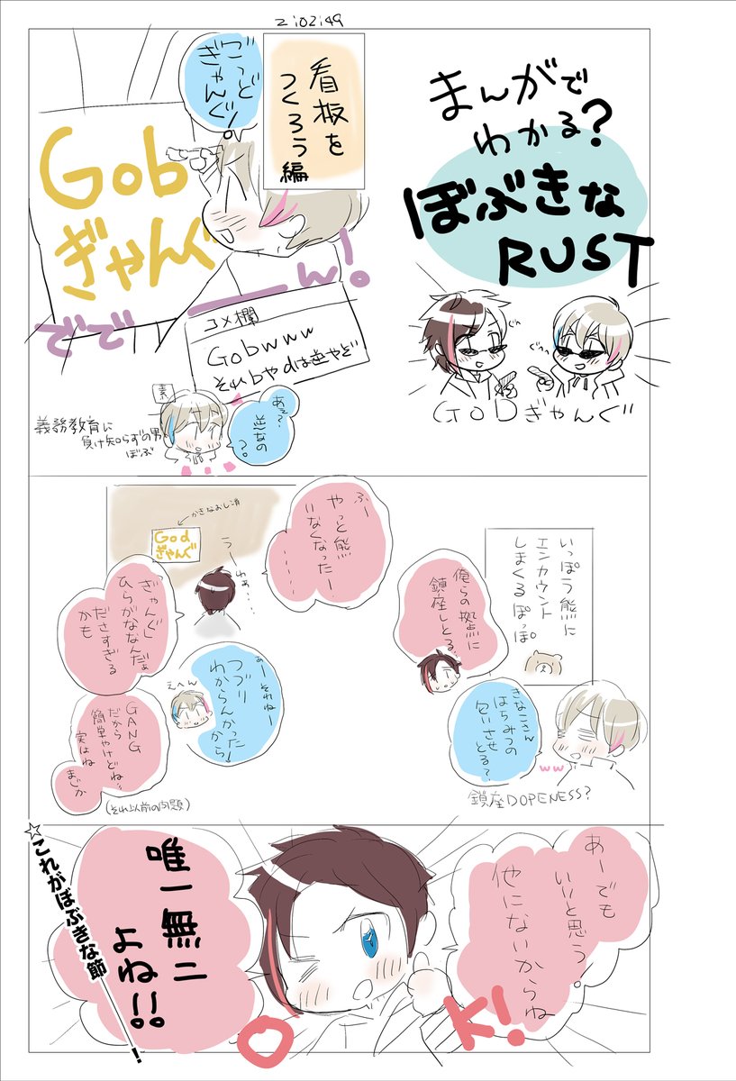 まんがでわかる(わからない)ぼぶきなRUSTらくがき4 連れ去られるぎゃんぐ編 #Bobアート #kinakoart 信じられるかい?これでもまだ第1回目の配信分のネタが終わらないんだぜ…?