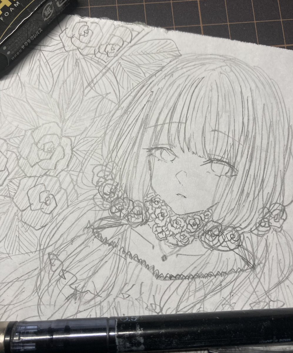 急に絵柄変わったイラスト #イラスト #イラスト練習中 #イラスト好きと繋がりたい #イラスト好きさんと繋がりたい #アナログ絵 #アナログ絵描きさんと繋がりたい #シャーペン #ドール #薔薇
