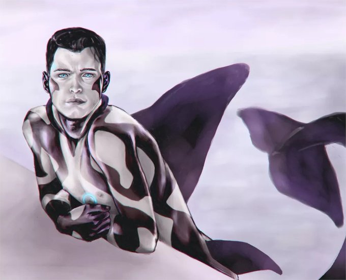 I more or less finished this. I'm kinda happy actually because I managed to do some pieces for #mermay this time. ☺️ I hope you like my merRK900~ #ConnorArmy #DetroitBecomeHuman #dbh #RK900 #merman #Nines #mermay2021 #DechartGames #connor #android #orca #mermaid