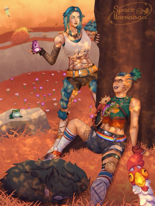 dino ladies and their tamed beasts 🦖 ahhh finally finished these two after nearly 20 hours 💓 i really hope you like it! ❤️ and 🔁 are EXTREMELY appreciated 🤝 #FortnitePrimal #Fortnite #FortniteArt #Tarana #Gia #Giana #Pride #Pride2021