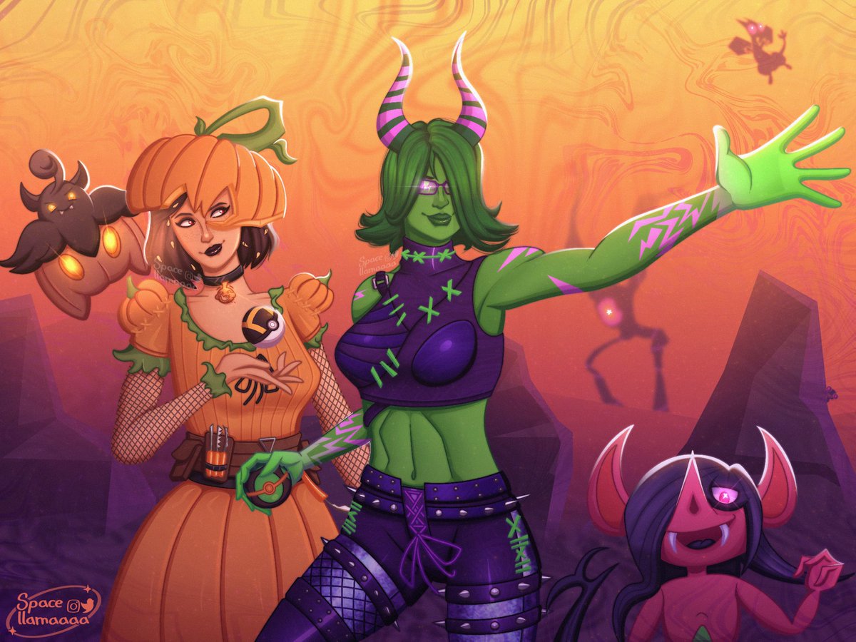 patch and ravina with their partner pokémon pumpkaboo and morgrem 🎃😈 happy halloween! 👻 #FortniteArt #FortniteSeason8 #Pokemon