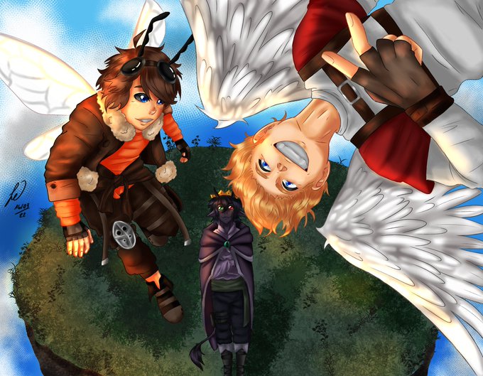 Benchtrio; Origins SMP Style! Took me literal ages to finish this one x3 @Ranboosaysstuff @TubboLive @tommyinnit #ranboofanart #tubbofanart #tommyinnitfanart #originsmpfanart