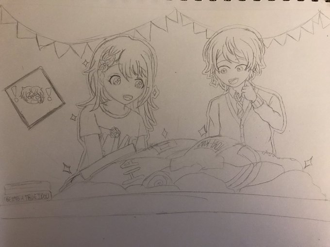 Hey everyone! decided to draw something for my friend's project sekai au.. please dont flop "Wooooow! Everything's so.. amazing! There's so much!" [Top Idol Fan!] 花里 みのり 4* Cameos: 天馬 司, 東雲 彰人 #prsk_FA #projectsekai