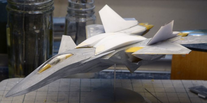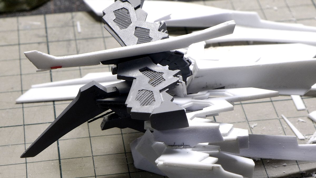 ←まだスジ彫りすら入ってないので厳密には「塗装前」ではない。 →不思議な模様のグール迷彩にしていないのは、見てのとおりアップグレード(ダウングレード?)改修後のアドバンスト・シルフィードだから。526TFSのは所謂"オリジナル・シルフィード" #これを見た人は塗装前と塗装後を貼れ