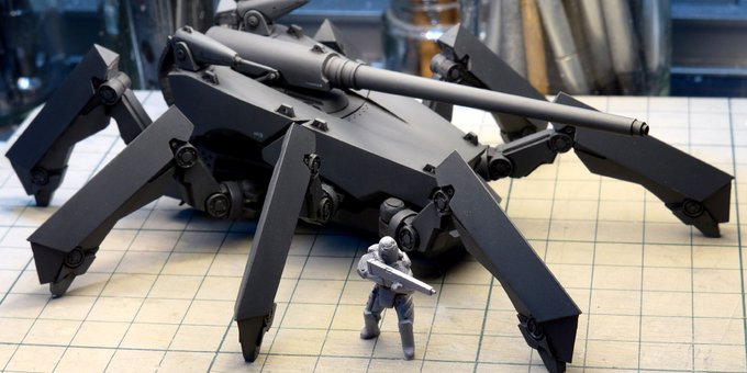 何か足りない気がするのだけれども……。 そう。機甲兵器には随伴する歩兵が必須で、この場合は装甲歩兵"ウルフヘンジ"。Ep.12巻頭の設定画を見ながら余ったプラ材でてきとうに作る twitter.com/Sparrow_S_A/st…