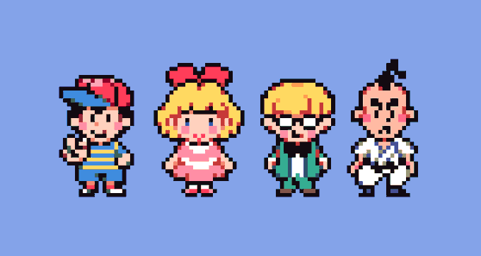 Mother 2's party in the style of Mother 4 #MOTHER2 #EarthBound #pixelart