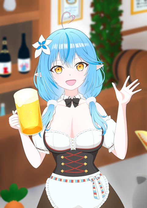 「あ、いらっしゃい!」 遅くなりましたが、以前コラボで話題にあった団長のディアンドルを着たラミィちゃんを描きました! #LamyArt