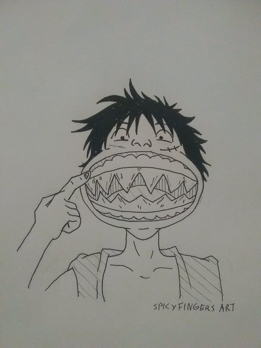 Inktober day 8! Today's prompt was "teeth" so I drew one of my favorite scenes from Arlong Park . . . . #inktober2020 #inktober2020day8 #Inktober #ONEPIECE #monkeydluffy