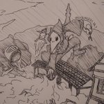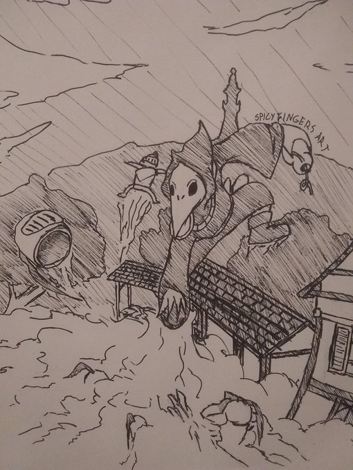 Inktober day 15! This one was a bit of a stretch, but I drew the armor outpost battle from shovel knight: plague of shadows! #inktober2020 #Inktober #inktober2020day15