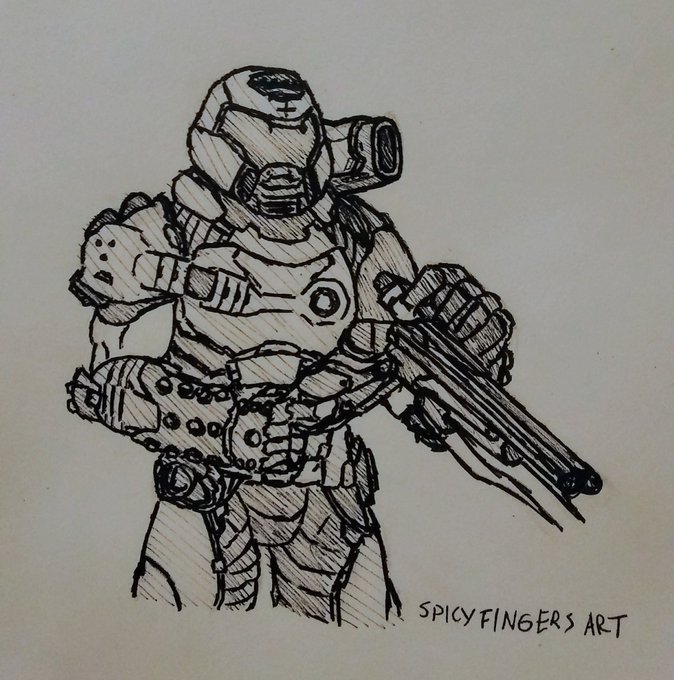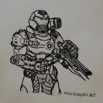 Inktober day 21! Today's prompt was Rip, so I drew the doomslayer from doom eternal getting ready to rip and tear until it is done #inktober2020 #Inktober #inktober2020day23