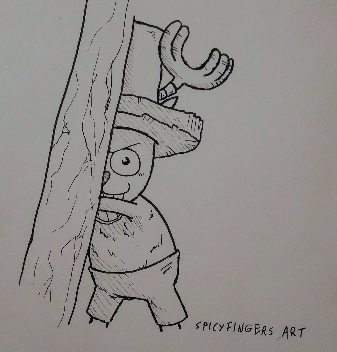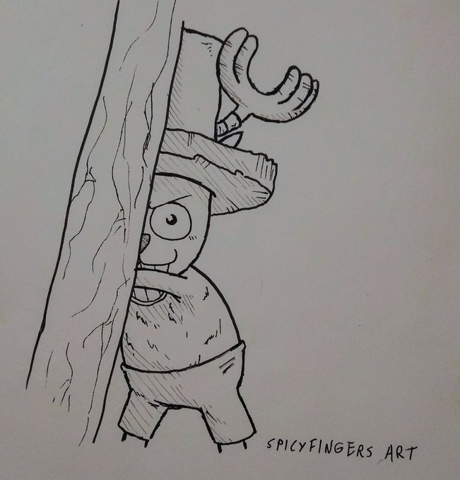 Inktober day 26! Today's prompt was Hide so I drew Chopper of One Piece fame hiding from an adversary #Inktober #inktober2020 #inktober2020day26 #ONEPIECE