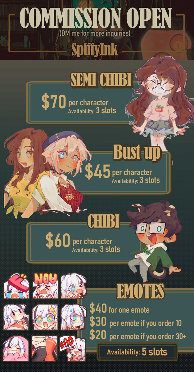 Hello buds! I had to take some days (a year) off from commission work. BUT I'M BACK BEECHES! If you can help share this around that would be much appreciated!! Funds go straight to help me move out! Thank you so much for your supports! Carrd for more info: spiffyink.carrd.co/#