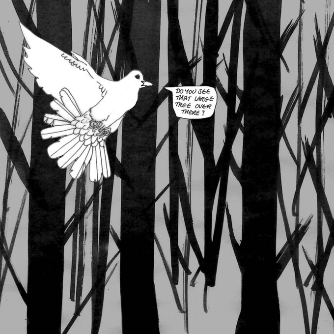 "Do you see that big tree over there?" said the dove. In fairy tales when animals start to talk, it is not remarked upon. But it would be nice if they could be a bit more specific. #inktober2019 #fairytales #theoldwomaninthewoods #inktoberfairytales #FairyTaleTuesday