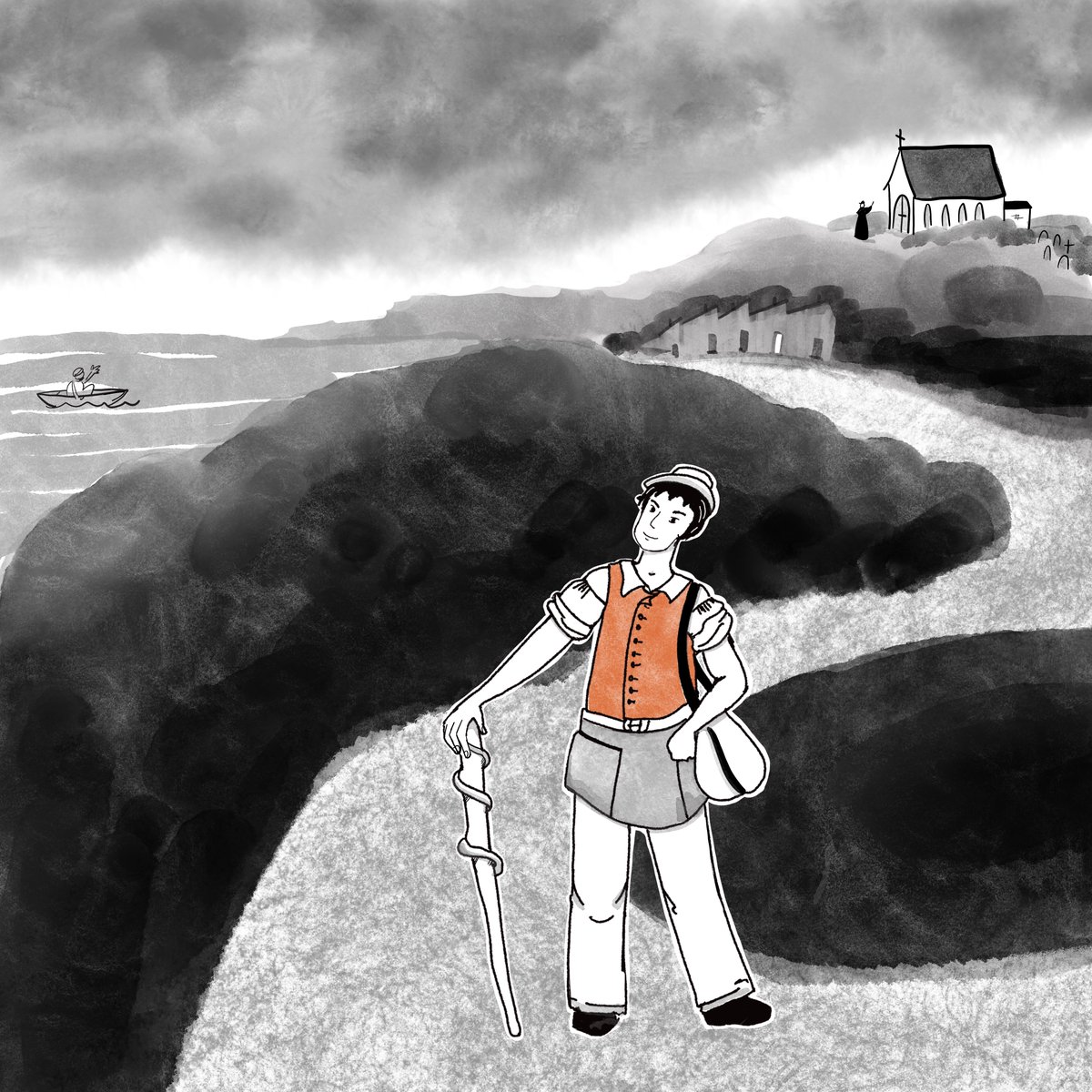 Lucas reached a town where everyone was in mourning. A black flag with a skull on it was waving from the tower. He started looking for a place to stay and asked the innkeeper what had happened. #inktober2021 #fairytales #halloween