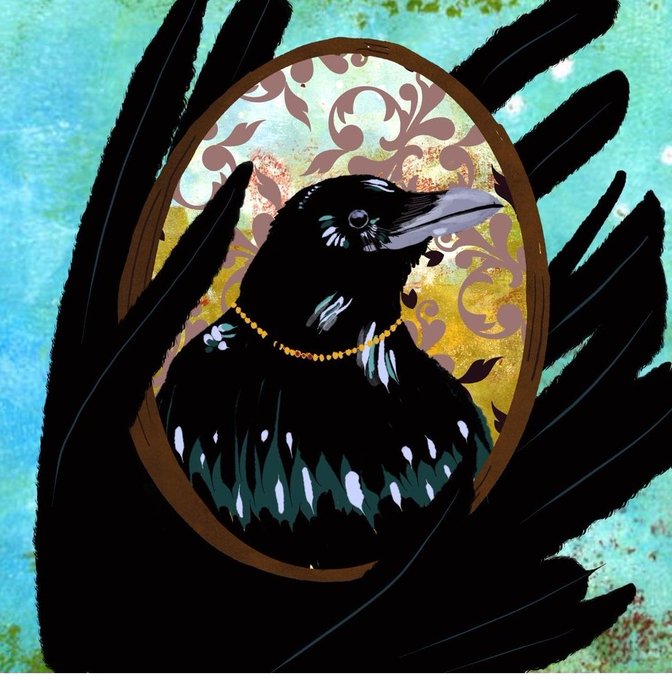 Lucas turned himself into a falcon and flew from one tree to the next. He caught the attention of the princesses, and let himself be captured by one of them. He landed on her hand, and she took him up to her bedroom, where he was given a golden perch. #inktober2021 #Fairytales