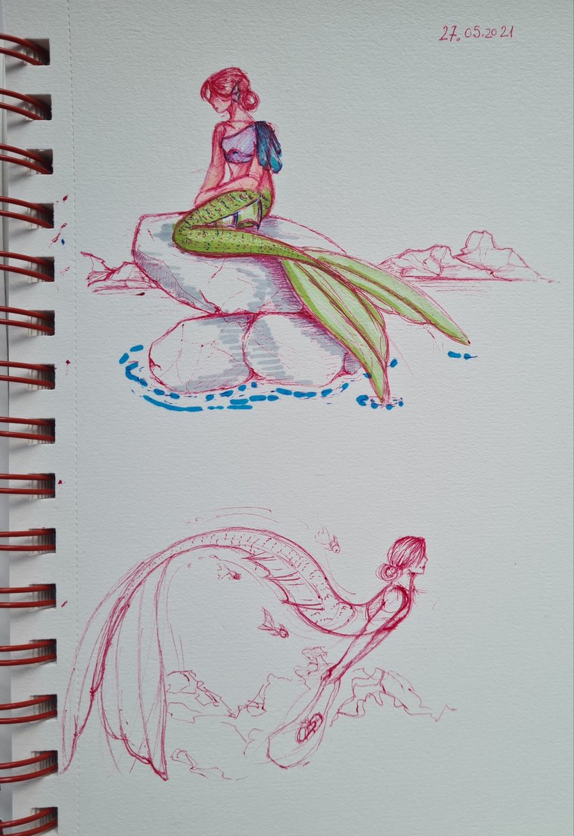 Lonely mermaid waiting for her lover to come back (or something like that idk) + bonus sketch • #art #ArtistOnTwitter #mermay #mermay2021 #mermaids #sketch #sketchbook #drawing #draw #Mermaid #artist #characterart