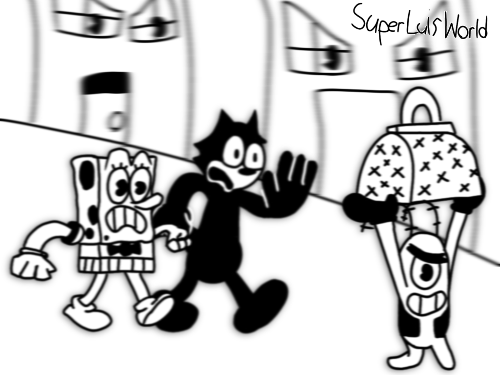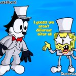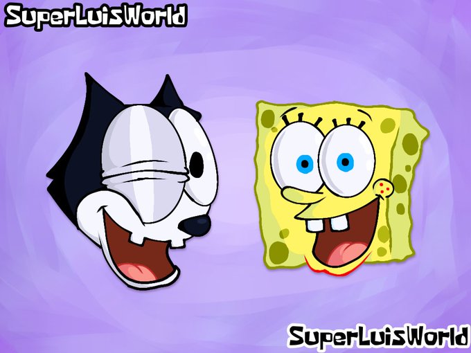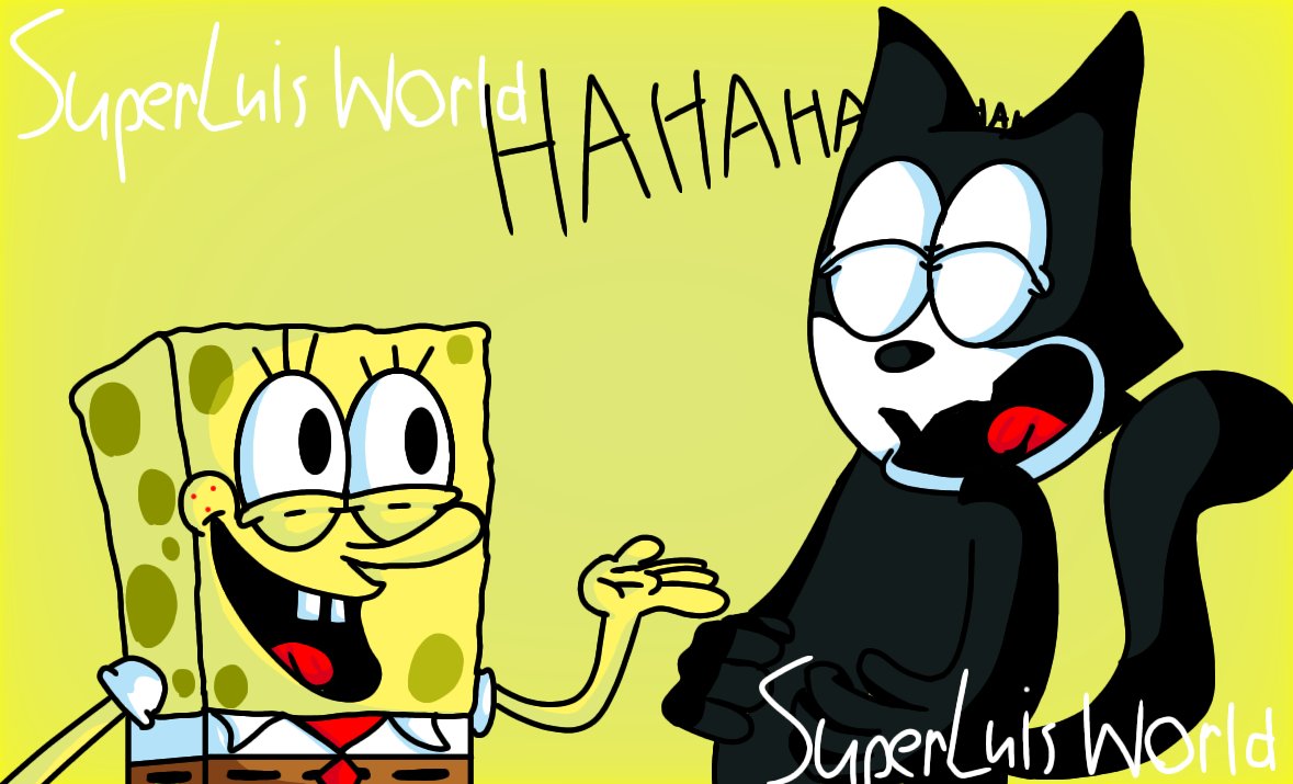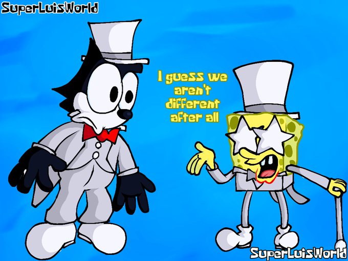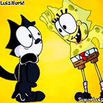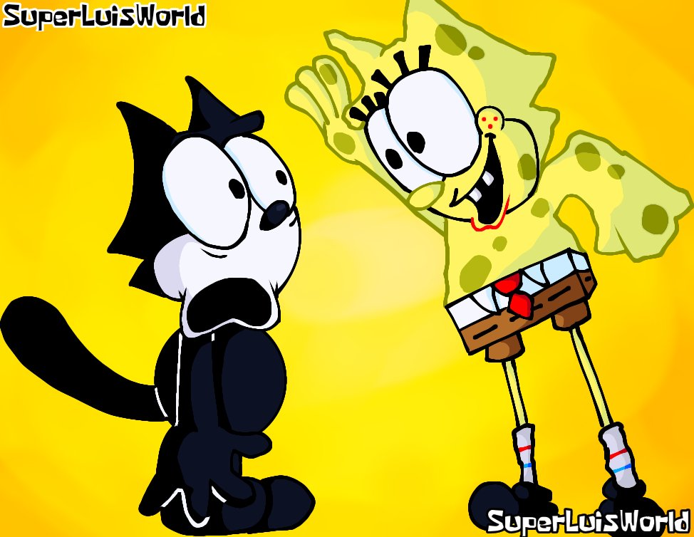 Spongebob telling felix a funny joke #spongebob #SpongeBobSquarepants #felix #felixthecat #felix_the_cat #FANART #crossover