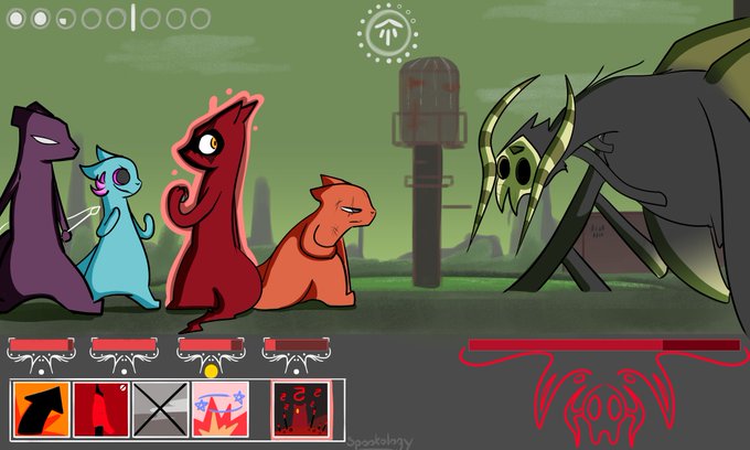 Day 6 - Garbage Wastes I was thinking, the night before sketching this out, about what it would look like if Rain World was a turn-based combat game instead of an adventure/survival game. Ergo, this is the result! #RWArtMonth #Rainworld #rainworlddownpour #Rainworldfanart