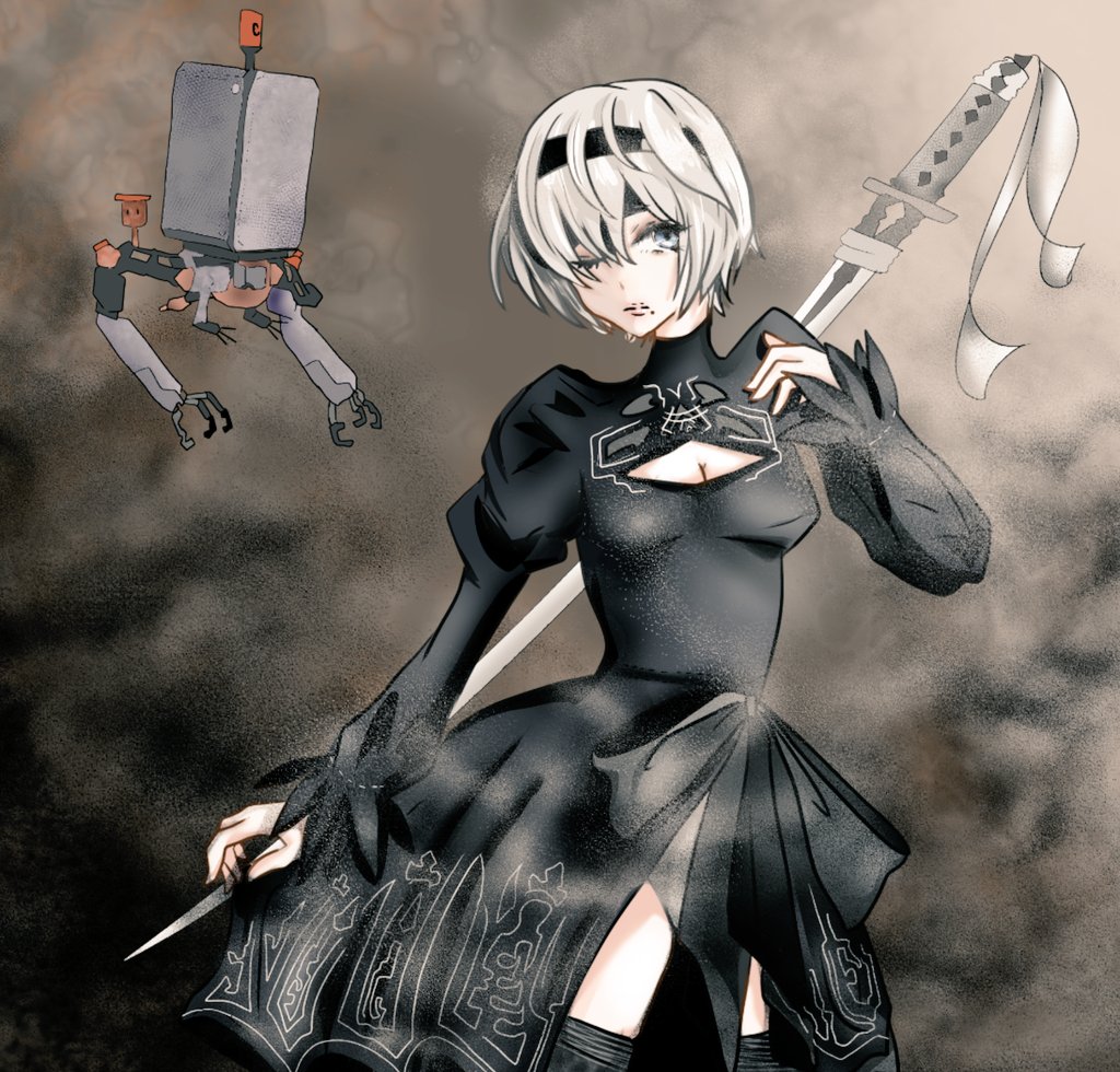 NieR:Automataが好きすぎて久しぶりに、模写というか描いてみました!🥰 お絵かき楽しいね💕 #お絵描き好きな人と繋がりたい #NieRAutomata #イラスト #お絵描き #2B
