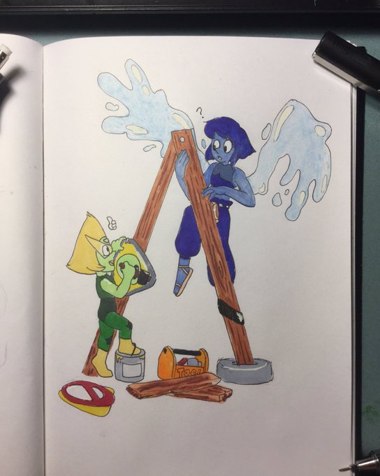 Day 5 - build Nothing like spending the day making meep morps with your significant other! #inktober #inktober2019 #inktoberday5 #lapis #Lapislazuli #Peridot #Lapidot #build