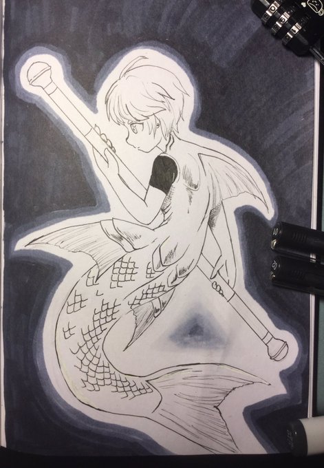 Day 6 - Husky Husky the fish +anima from the manga series +Anima!!! You thought I was gonna draw the dog? NAH I choose the hard route! #Inktober #inktober2019 #inktoberday6 #husky #plusanima #anima #mermaid #merman