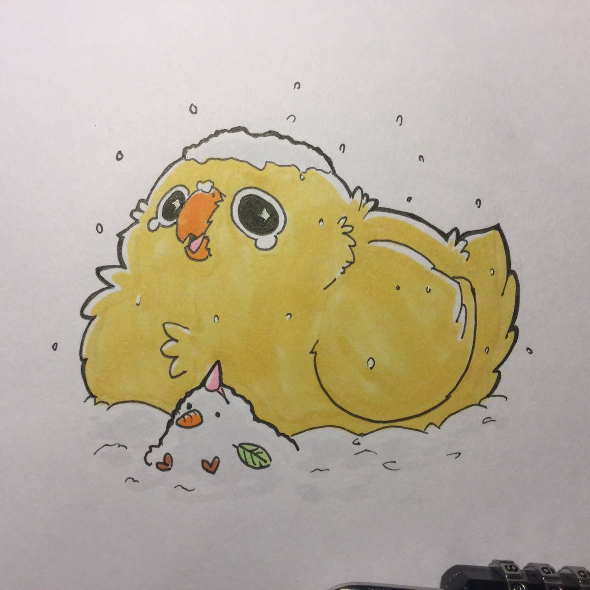 Day 11 - Snow John made a friend! A snow fren! And they both got hats :D #Inktober #inktober2019 #inktoberday11 #Snow #JohnTheBirb