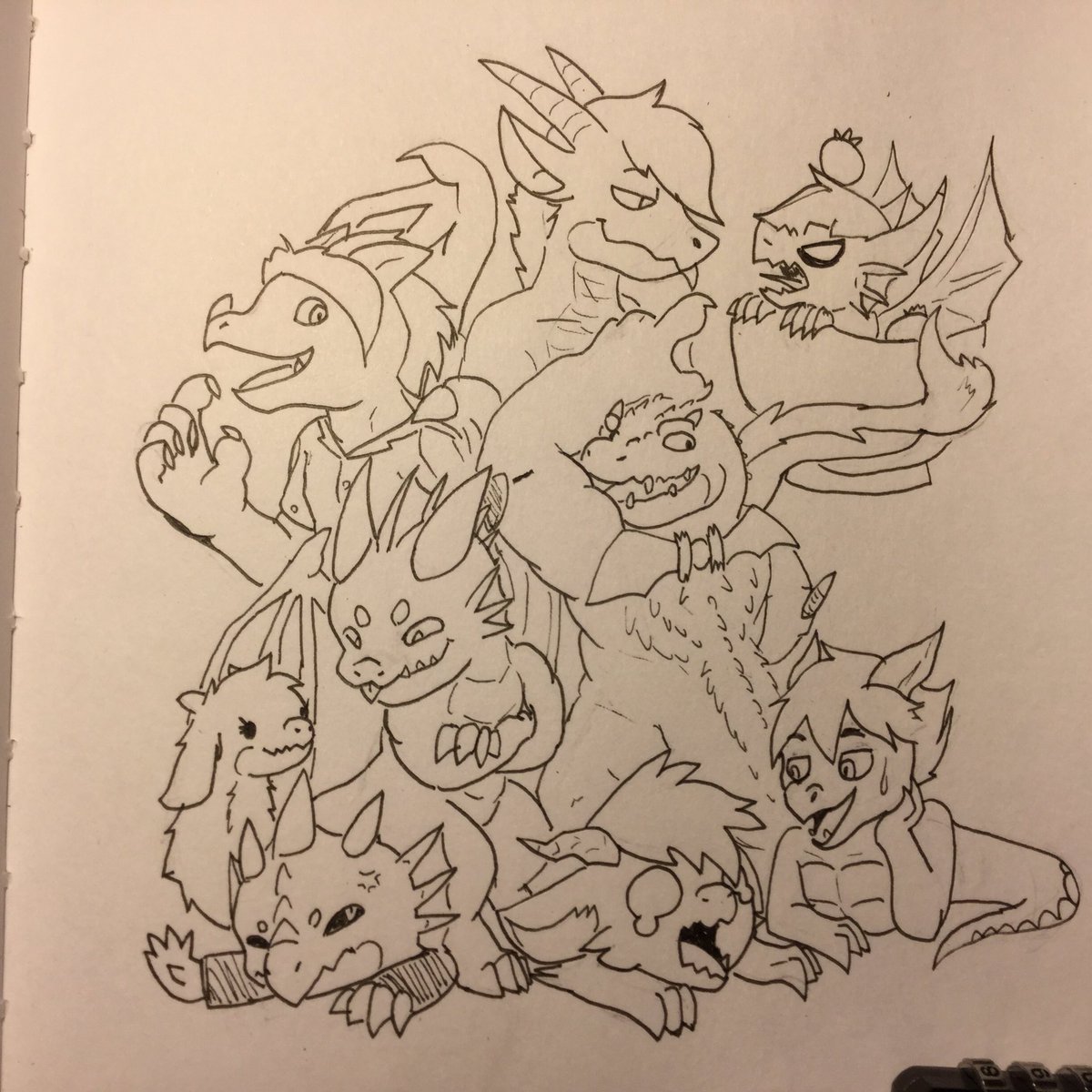 Day 12 - Dragon DERG PILE!!! Ft my friends and my dragon character, Dreigow #Inktober #Inktober2019 #Inktoberday12 #dragon