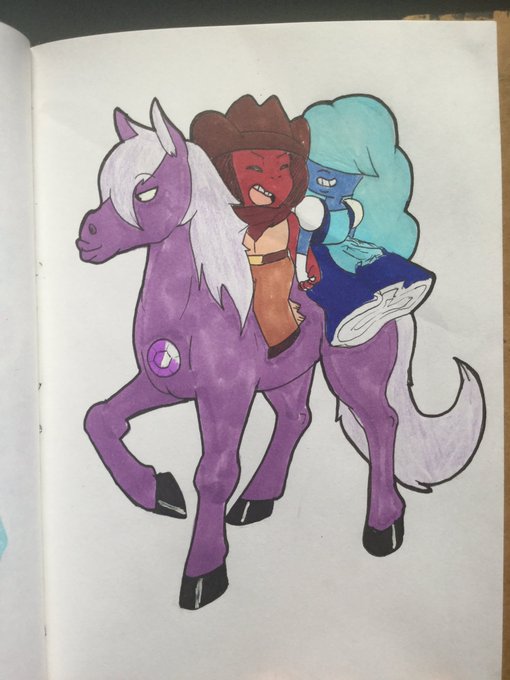 Inktober day 28 - ride 🔶🔶 One of my favourite episodes :D 🔶🔶 #Inktober #inktober2019 #inktoberday28 #ride #stevenuniverse #stevenuniversefanart #rubyrider #ruby #sapphire #rupphire #amethyst #butsheahorse #horseamethyst