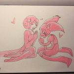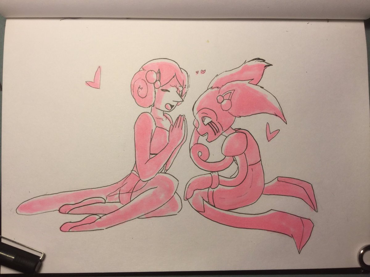 Inktober Day 17 - Ornament "Today, right here, right now, I already feel found..." The cute couple trying on hair pin ornaments together #Inktober #inktober2019 #inktoberday17 #ornament #stevenuniverse #StevenUniverseFanart #spinel #pinkpearl #spinearl