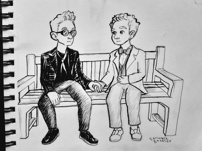 Inktober day 11: simple. Simply Crowley and Aziraphale holding hands. (Hoping to see this in season 2 😊) #inktober2021 #ineffablehusbands #goodomens