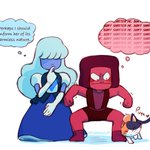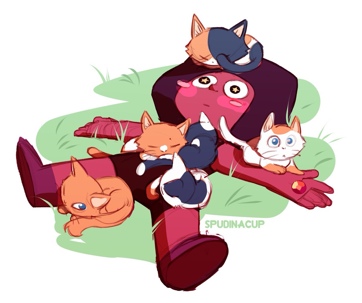 Cats love warm things, sunlight, laptops, heating vents, and apparently Ruby. Once she knows they aren’t trying to destroy her I am almost certain she’s gonna be awestruck. #StevenUniverseFuture #StevenUniverse #StevenUniverseTheMovie #ruby #sapphire #suaugonewrong #catsteven