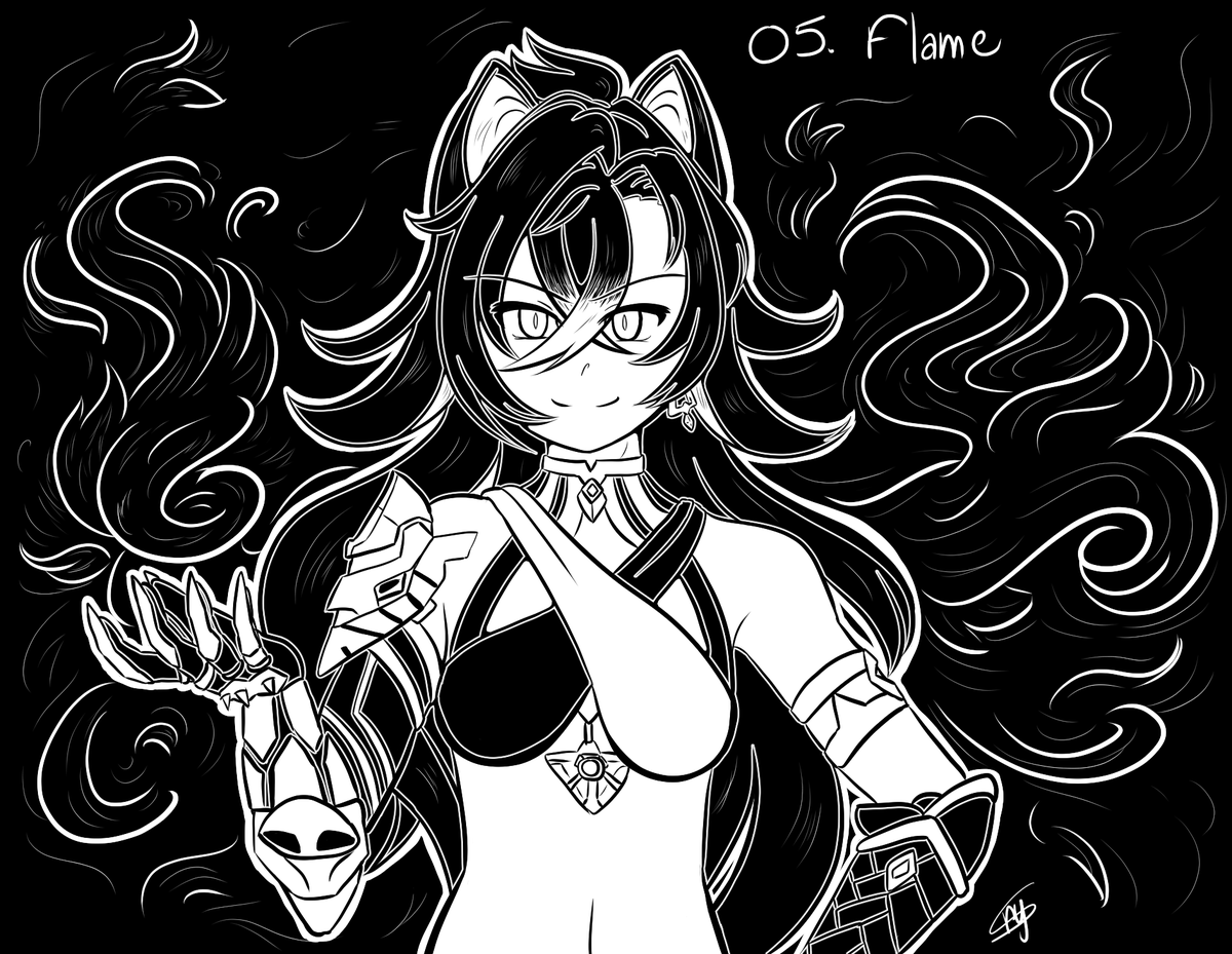 Inktober jour 5 sur le thème Flame avec Dehya <3 (vivement qu'elle soit jouable °w° ) #inktober2022 #genshinimpact #dehya