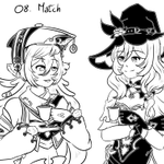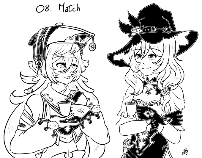 Inktober jour 8 sur le thème Match avec Yanfei et Lisa ! (parce que j'adorerais les voir se rencontrer dans le jeu) #inktober2022 #genshinimpact #Lisa #Yanfei