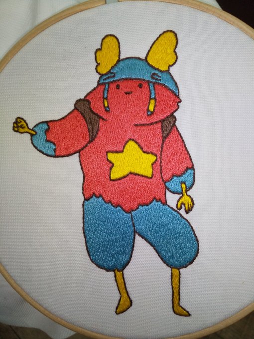 もふまるさん@mohumohunuko_3 のガフの画像を刺繍させていただきました😊 絵がホントにかわいい💕💕 あと2人分刺繍せねば🤣 このあとキーホルダーになる予定✨ #フォートナイトイラスト #刺繍 #フォートナイト