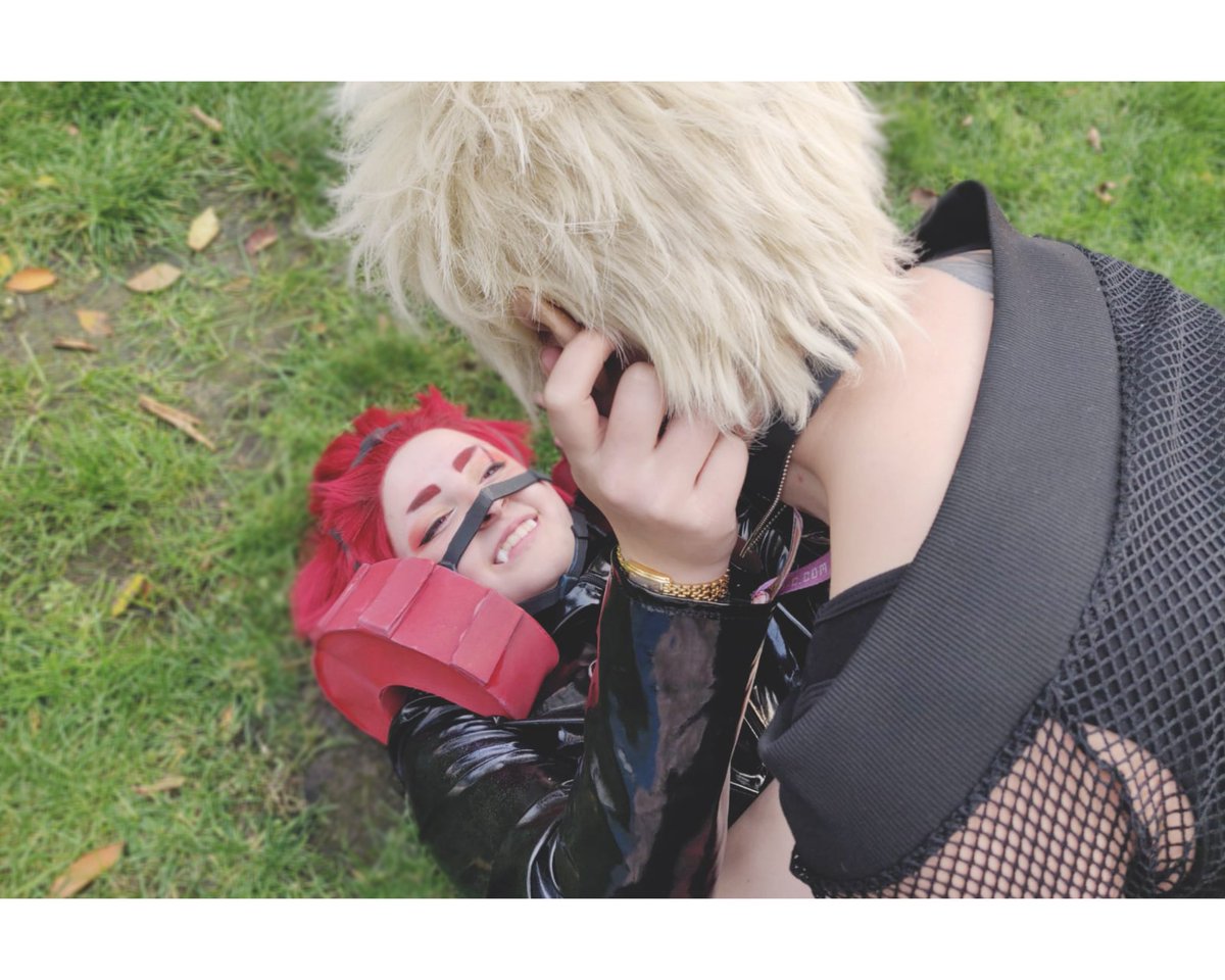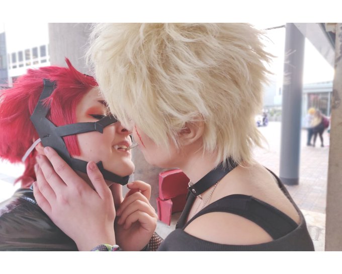 "I'm looking only at you, Kats." Demon Bakugou: @SenapiCosplay 📸: skullcosplay on instagram #kirishima #bakugou #krbk #kiribaku #bakushima #cosplay