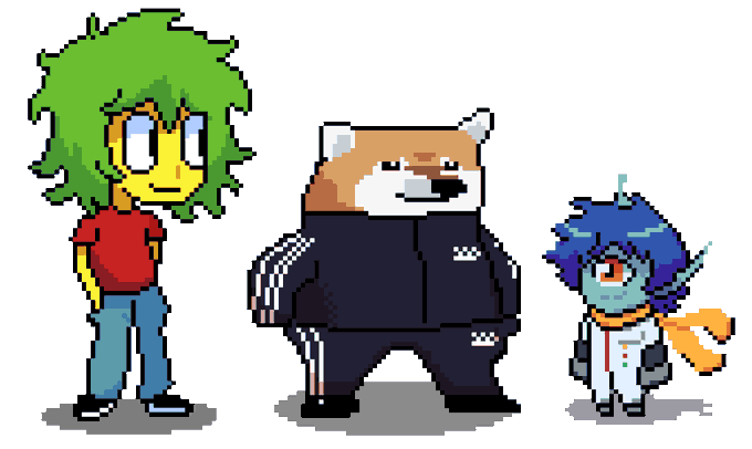 #pixelart de los personajes principales de mi #webtoon Fighting GaMMA, que es sobre #fightinggames , si lo quieren leer, acá está el link: webtoons.com/en/challenge/f…
