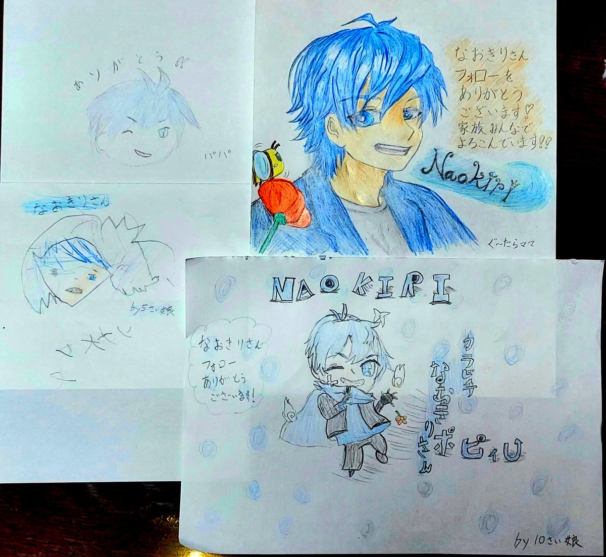 なおきりさん、フォローありがとうございます‼️ なおきりさんフォローありがとう記念に家族皆でなおきりさんお絵描きしました🎵 #からぴち #なおきりさん