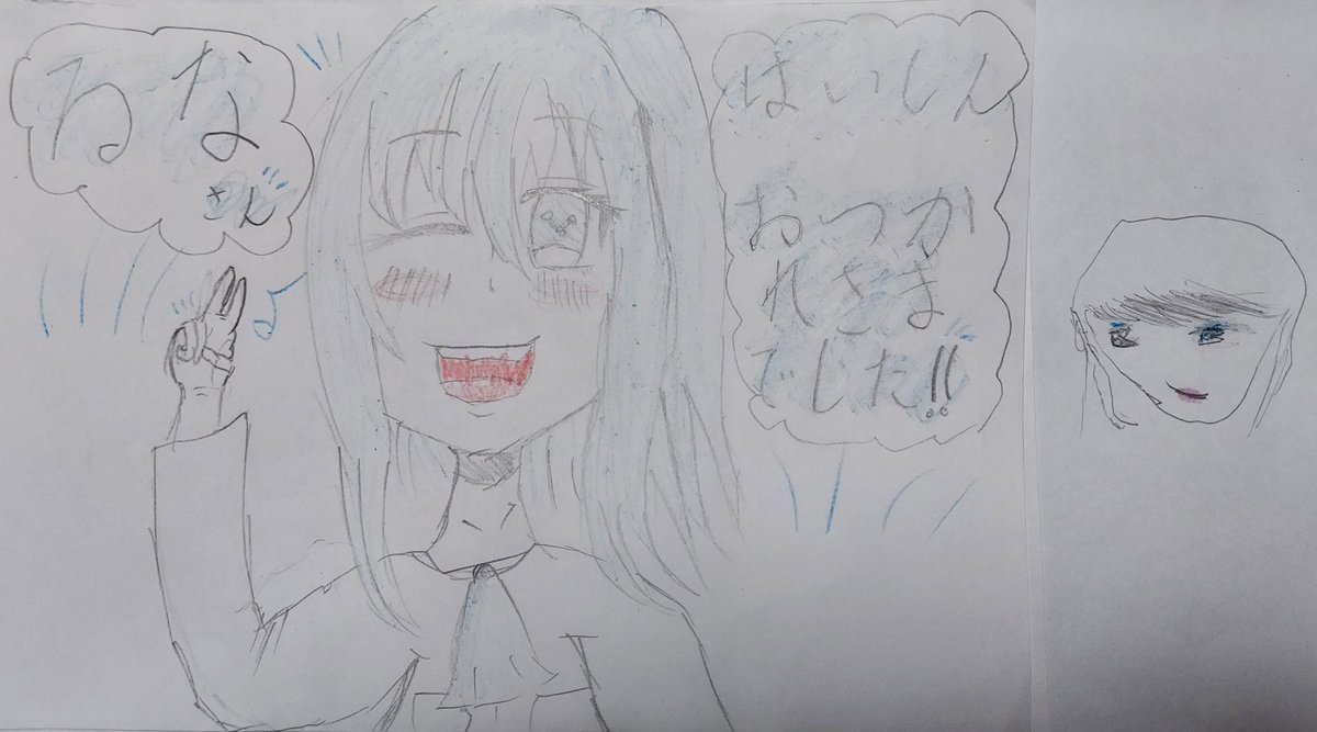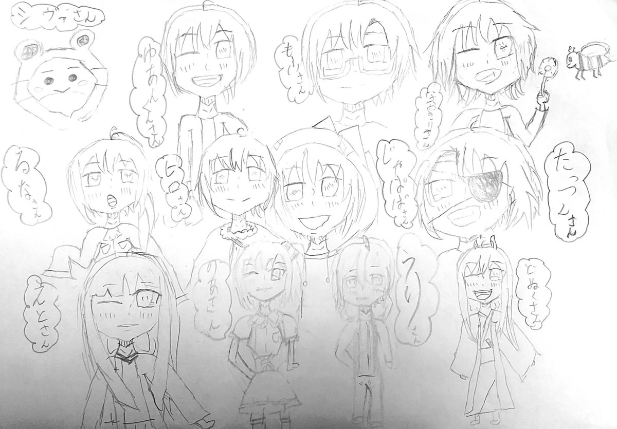 1 19 長女(10歳)が寝る前の時間を使って頑張って3日かけて描いていました✏️ 前のメンバーから描いていって、「じゃぱぱさんとたっつんさん…大きさが💦」と娘が言ったので「声の大きさ順に顔が大きいの?」と聞いたら「確かに🤣」と笑われましたwww メンバーの方々に、どうか届け~✨ #からぴち 22/01/16 22:15