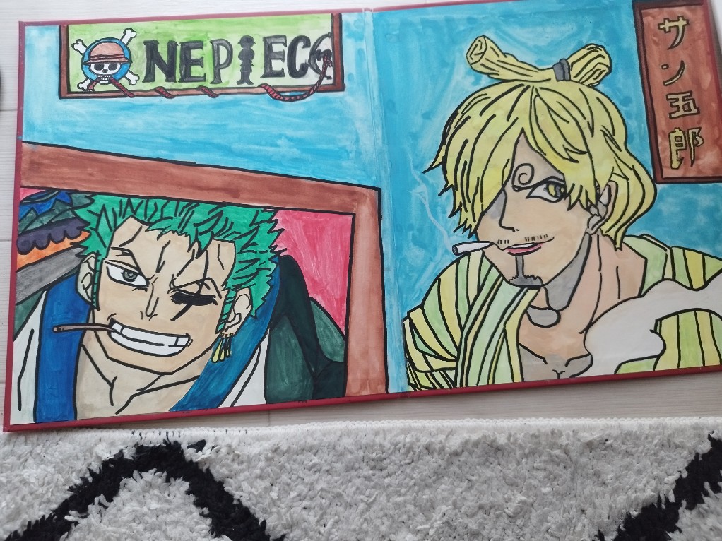 ワンピース、サンジとゾロ。今日学校のワンピース好きの先生に上げてきます💦 創作時間結構かかった😓 少し満足の出来🤤 #ワンピースイラスト #色紙イラスト #ワンピース絵描きさんと繋がりたい #イラスト