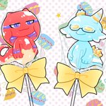 【過去絵】 ナガイとサフィアスの飴細工🍭 いちごヨーグルト味とソーダ味です💛 口の中を怪我しそうな形ですね。
